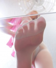Stunning blonde loves posing in her colorful underwear, and you must admit she looks adorable. One thing she likes more, however, is to strip down the lingerie so her tits can breathe while she's masturbating.