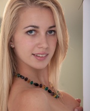 Blonde cutie with a beautiful smile and luscious bee-stung lips is ready to remove her black nightgown. There are hot tan lines on her chest and private part that you will like as much as her tiny shaved pussy that she enjoys exposing.