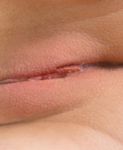 This ravishing blonde with long hair looks like a Rapunzel. She looks seductive while wearing white lingerie with pearls, under which are hidden small tits with pink nipples and a shaved pussy. Looking like an angel while touching her wet fanny.