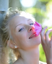 Pale blonde cutie loves having kinky solo time while out in the open. She removes her white shirt first quickly followed by her pink bra and panties. With a smile on her face she spreads her legs to show her pussy before turning around to tease more